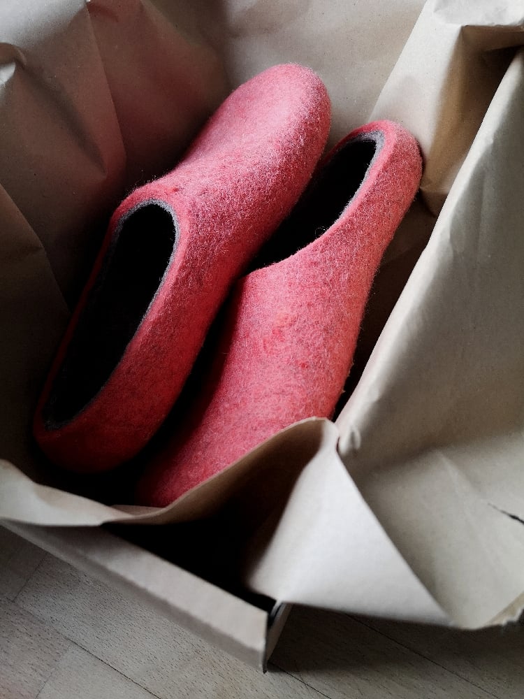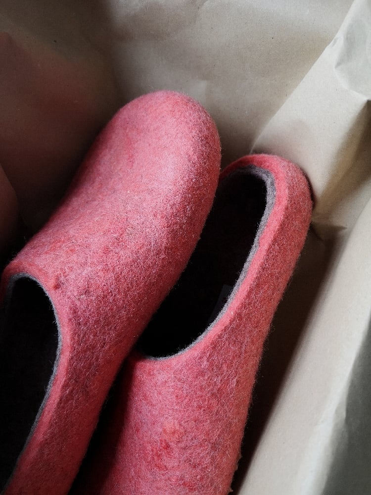 SALMON PINK felted wool slippers. Unisex size EU38.5